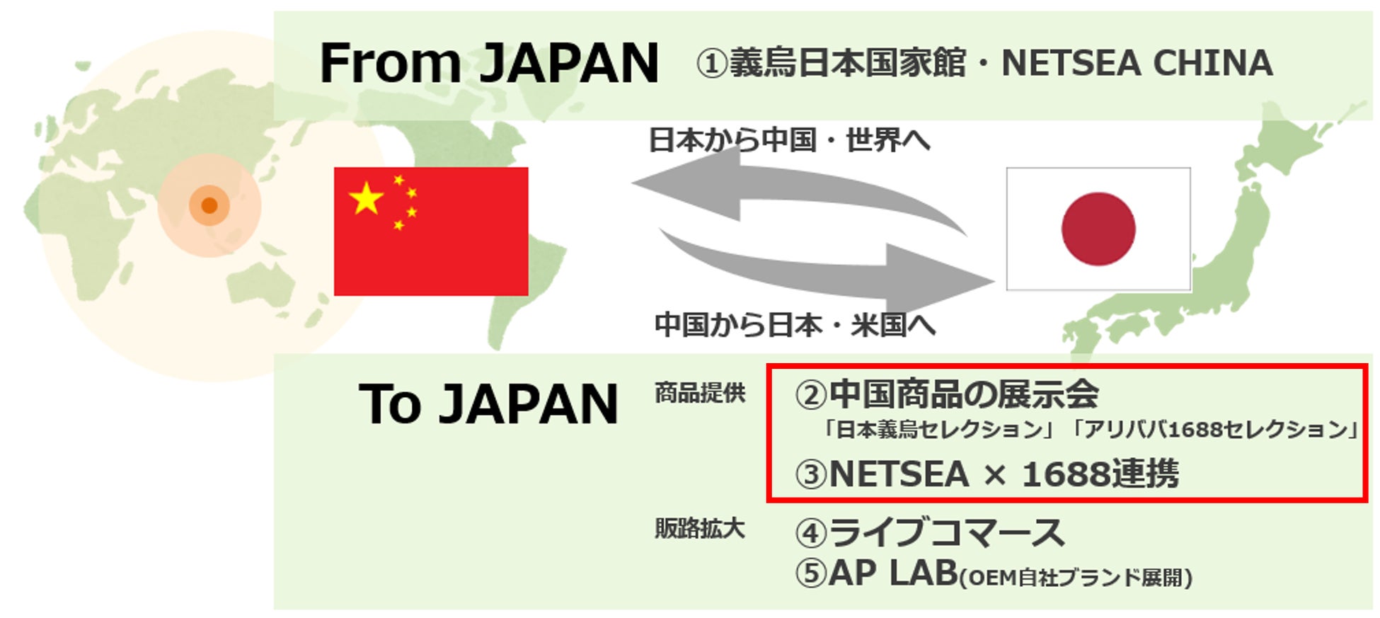 当社グループは、商品提供および販路拡大という二つの軸で、日中貿易におけるTo JAPANの取り組みを進めてまいります。販路拡大の面では、特にライブコマース関連事業にも注力しており、今後さらに以下の取り組みを強化していく予定です。