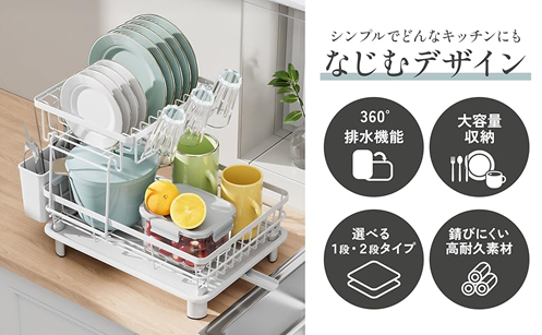 ■便利な箸立て&排水機能:360度回転&長さ調節可能な排水システムで水はけスムーズ。
