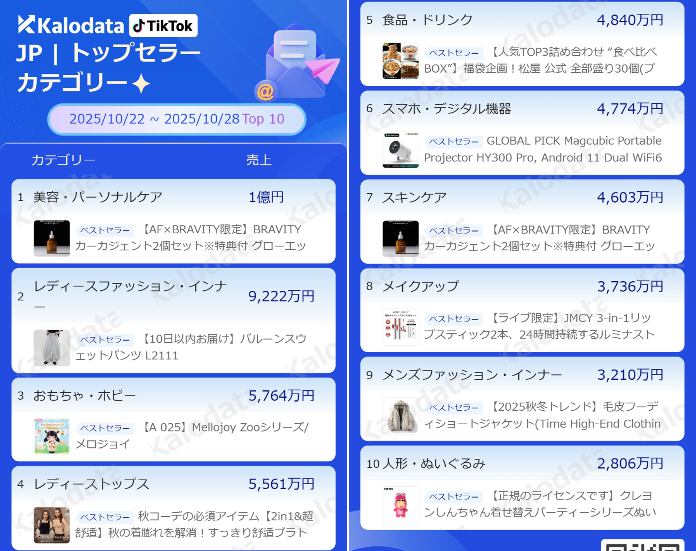 株式会社オークファン(本社:東京都品川区、代表取締役:武永修一)は、TikTok Shopの販売・動画分析ツール『Kalodata(カロデータ)』を用いた最新の市場レポートを公開しました。